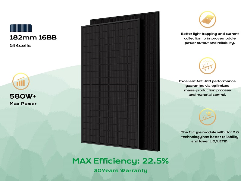 The most popular N-type solar panel now has low attenuation rate and high output rate, and is suitable for most major brand inverters.